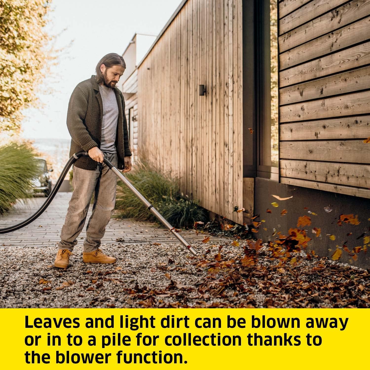 - Practical equipment: It has a 12-litre plastic collection container, a 1.8-metre suction hose and storage possibilities for accessories, cables and hose
