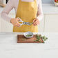 Kitchen Scissors – From snipping herbs to spatchcocking chicken, these durable scissors can handle a variety of tasks. Their easy-to-clean design allows the blades to separate for deep cleaning after handling raw meat or fish. A handy herb stripper is also built into the handles. (Do not use the sharpener on scissors.)