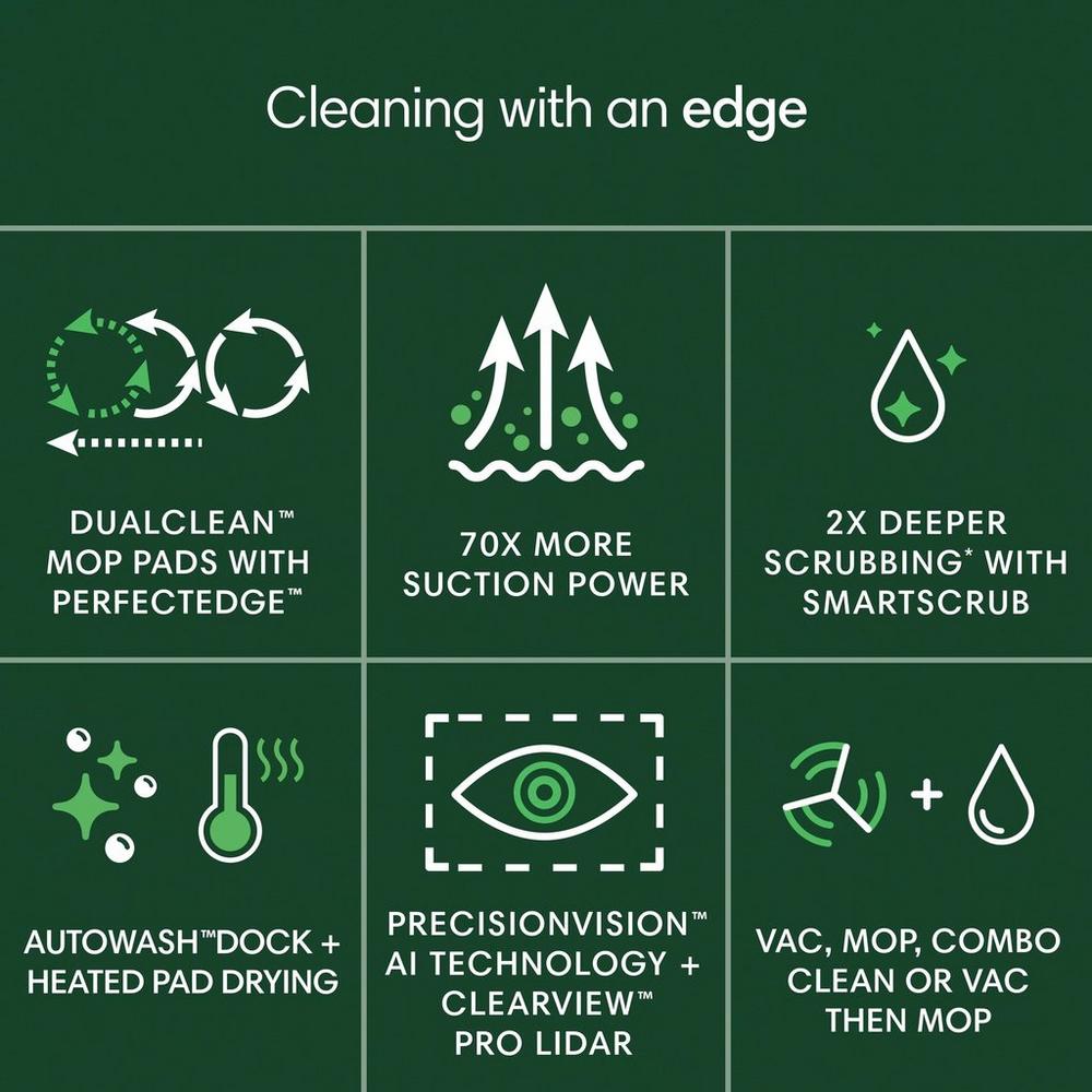 AutoWash Dock System: Enjoy 75 days of auto-emptying, 4 weeks of pad washing, heated drying, and nonstop cleaning convenience.