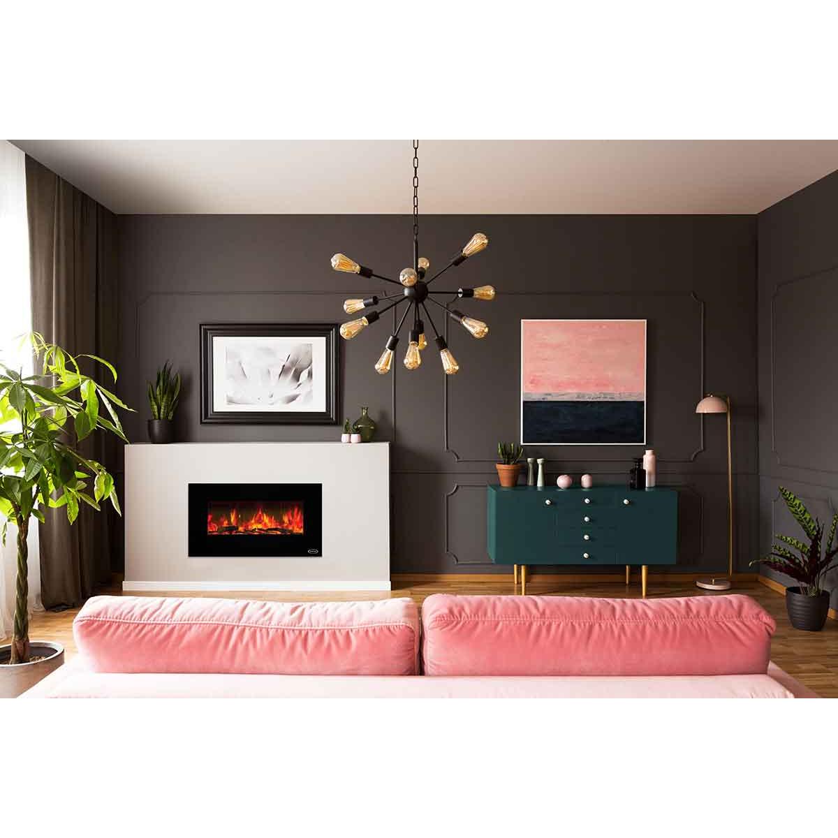 The ARGON Wall Hung 110cm creates a stunning focal point in any room. With its coloured flame and wood log feature is a beautiful thing to behold. Installation has never been easier – All you need is the wall space and a 3 pin socket