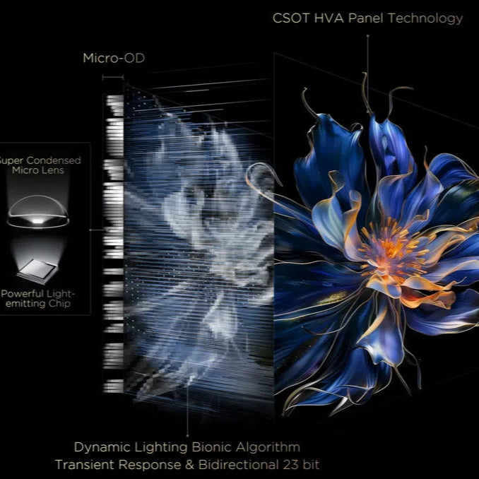 Combined with the CSOT HVA panel with higher native contrast ratio and the world's leading light and shadow control algorithm, Precise Dimming series shapes the real light and shadow so that the TV's comprehensive picture quality performance is dramatically improved compared to ordinary TVs, bringing an upscale image experience.