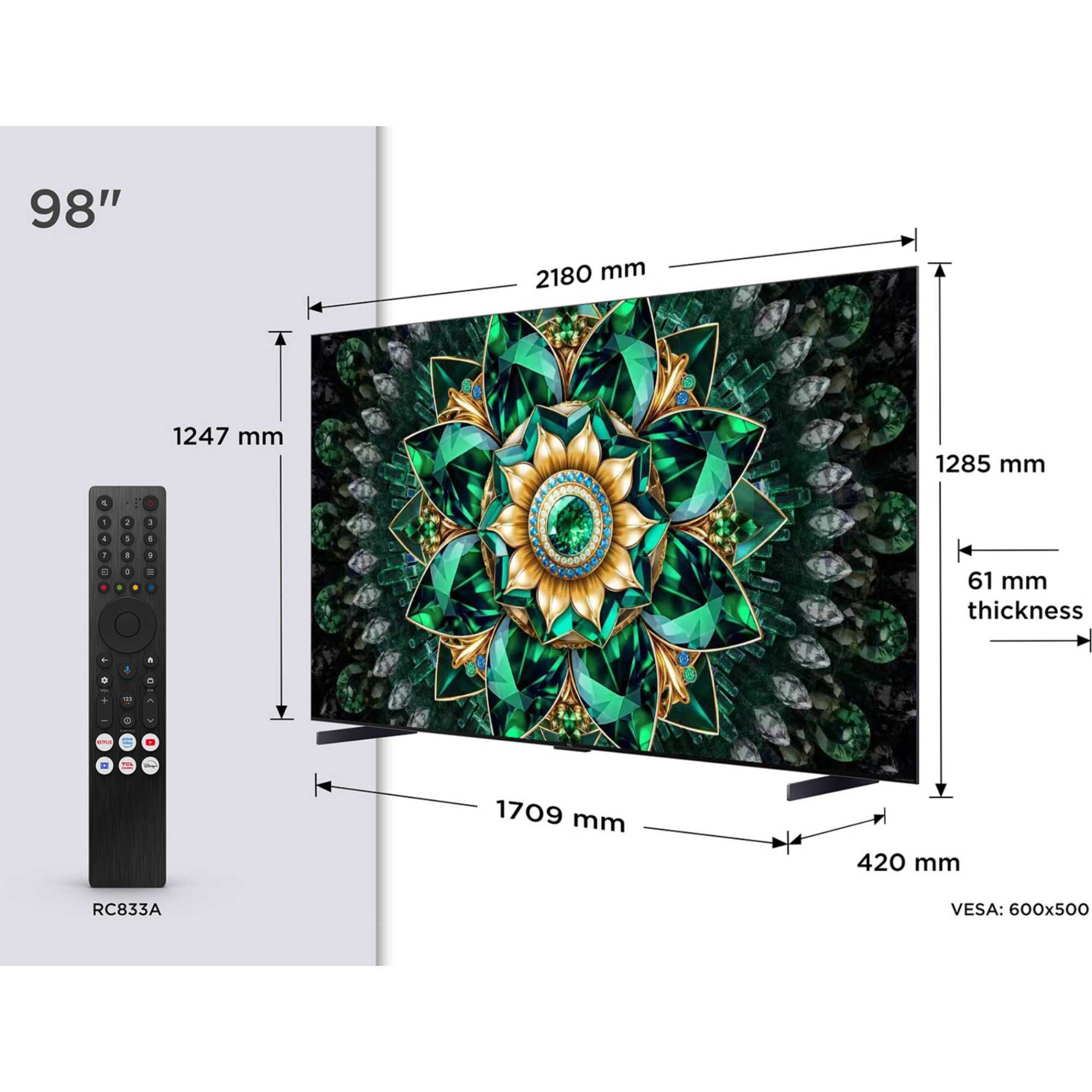 Experience the stunning visuals of the TCL 98Q7C-UK 98" 4K QD-Mini LED UHD Smart Google TV, engineered to enhance your home entertainment