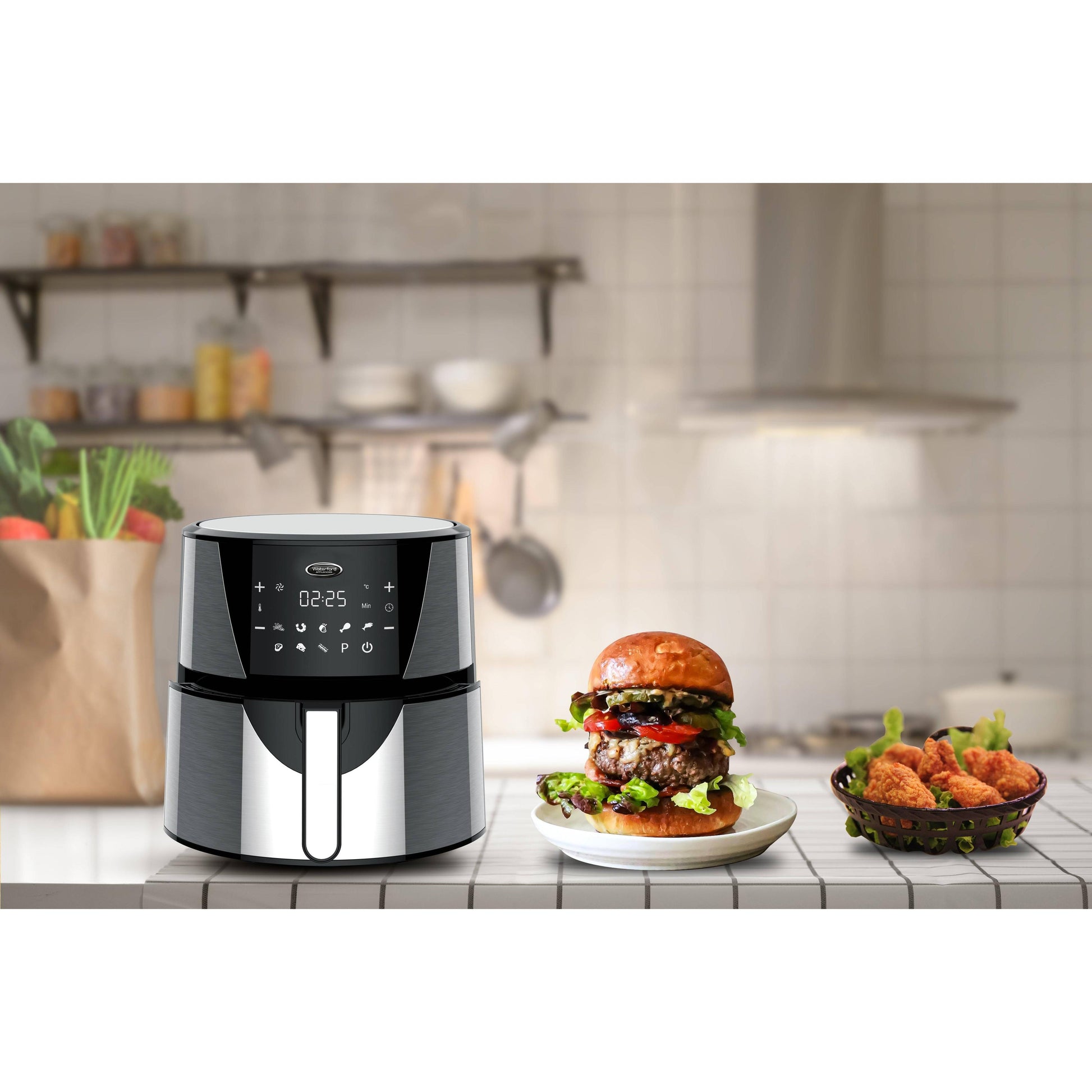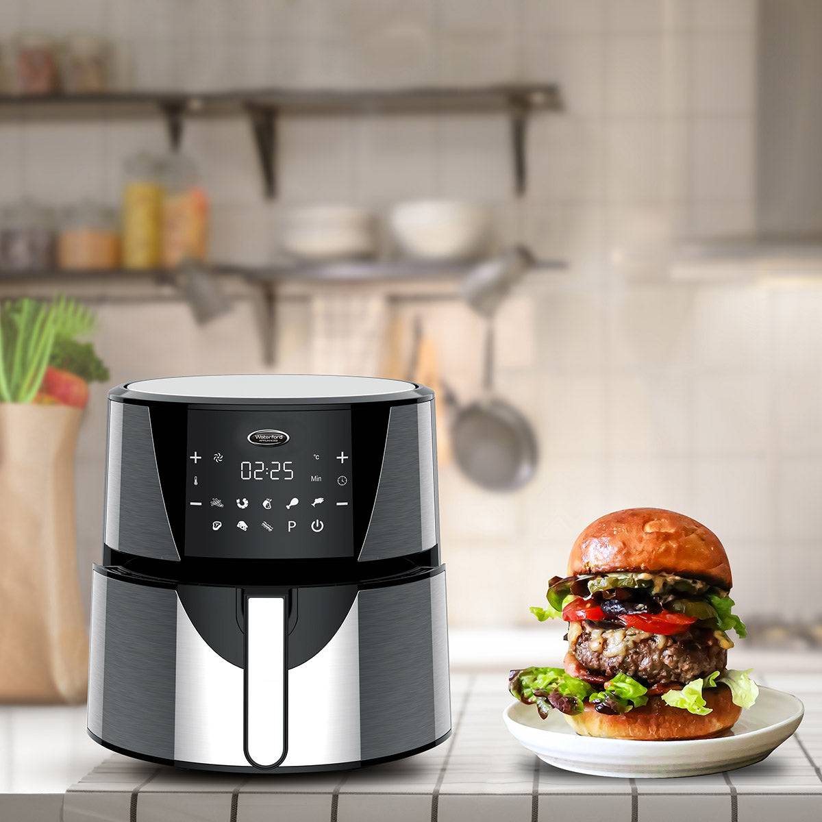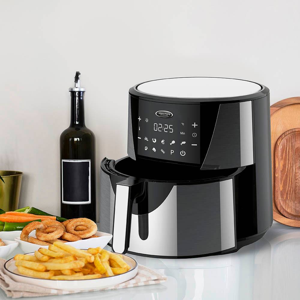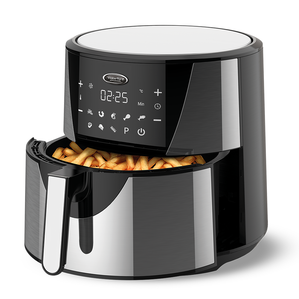 The Waterford Appliances Air Fryer has digital display with pre-set programs that are easy to adjust and will cook up to 200 degrees.